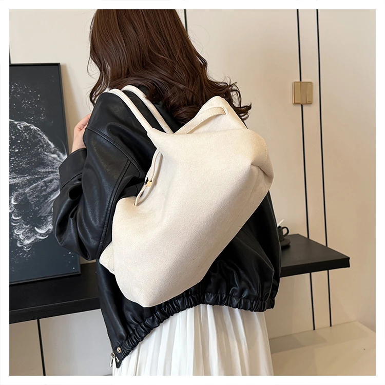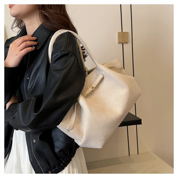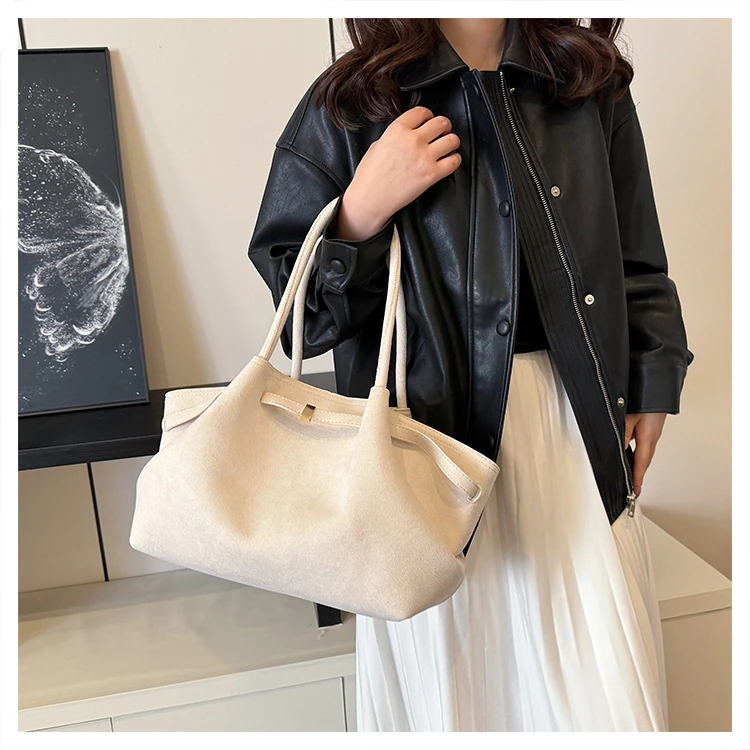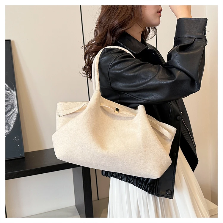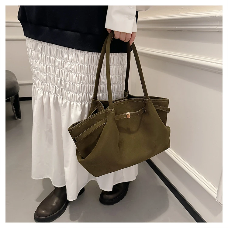 Arge Capacity Faux Suede Shoulder Bag Solid Ruffled Belt Decorative Casual Tote Handbag 2024 Hot Sale Bags for Women Bolsa Mujer